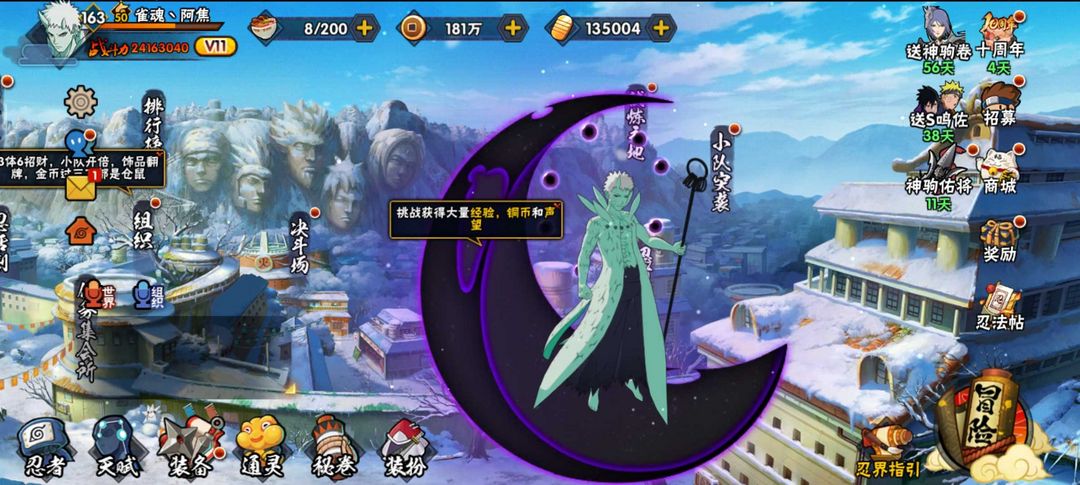 V区✨马斑体验♥十尾带土♥五星会谈阿飞♥九喇嘛阴水门♥✨须卡✨战力2400w♋53S,77A♋不会