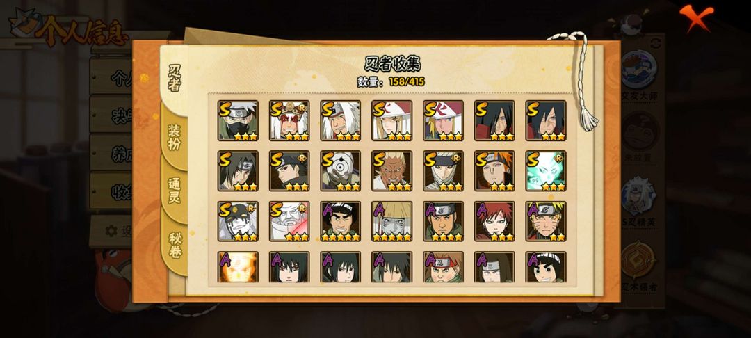 装备描述:16s⭐舍人⭐金式⭐桃式⭐须佐止水⭐无⭐三忍自来也,须佐卡卡西,黑绝,漂泊小南漂泊佩恩,有熊猫