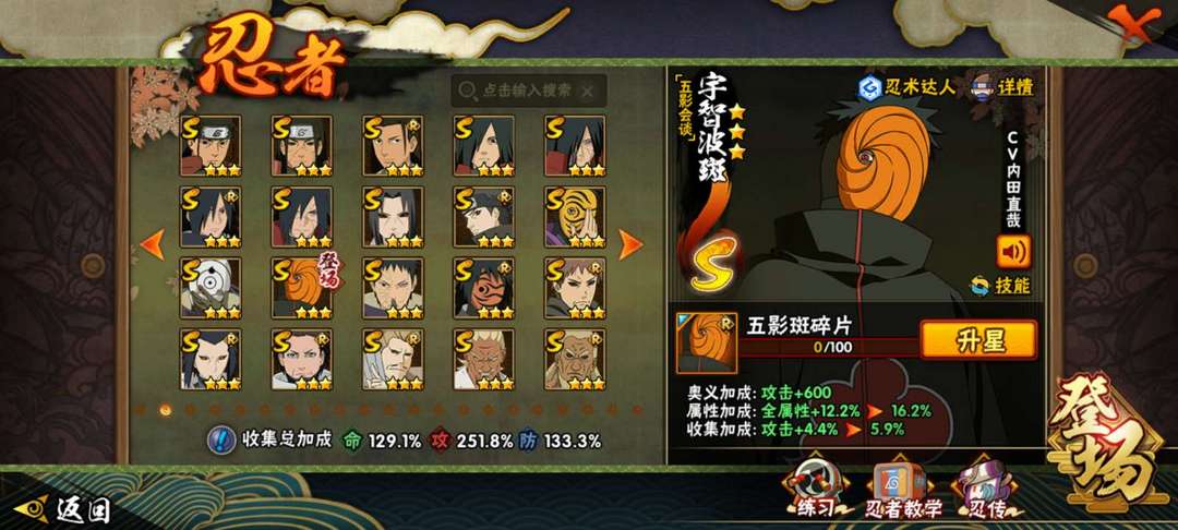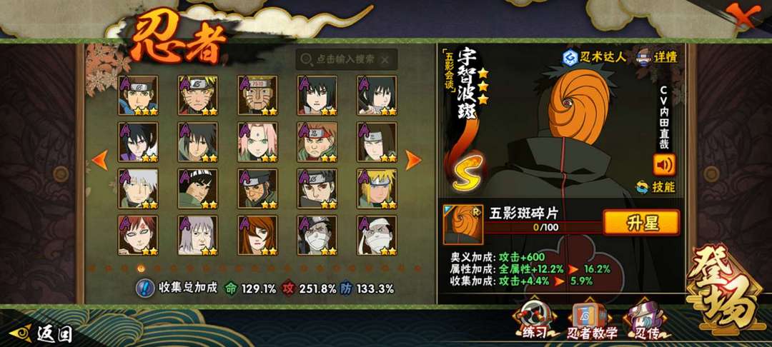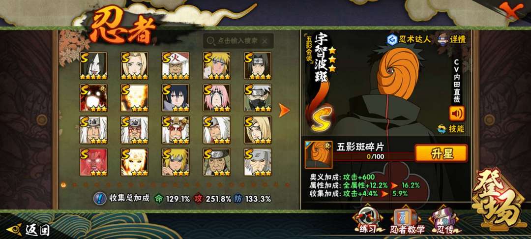 2270战力239忍者,44s46a,天道超,暴怒鸣人,传说自来也等各种热门忍者。