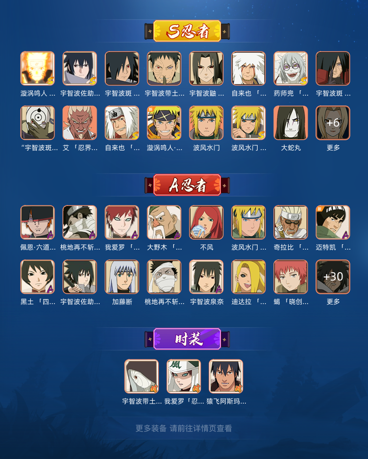装备描述:有22个S,40多个A,,1100w战力,好玩的娱乐忍者也有不少,点券B,18C都一大堆