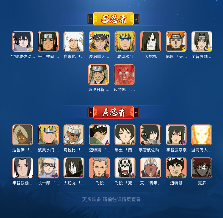 装备描述:10s 20a 死门凯 老三代 死柱间 永恒佐助 没人租可继续玩