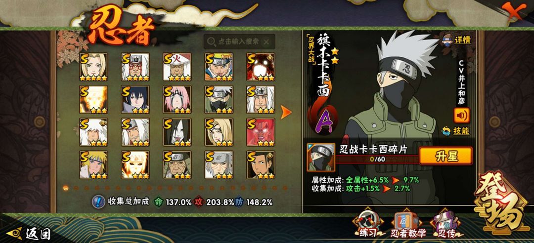 302忍者,35S,65A,C忍齐全,220W攻击可带团本 黑绝 漂带 漂南 泳南 新南 忍卡 妖纲