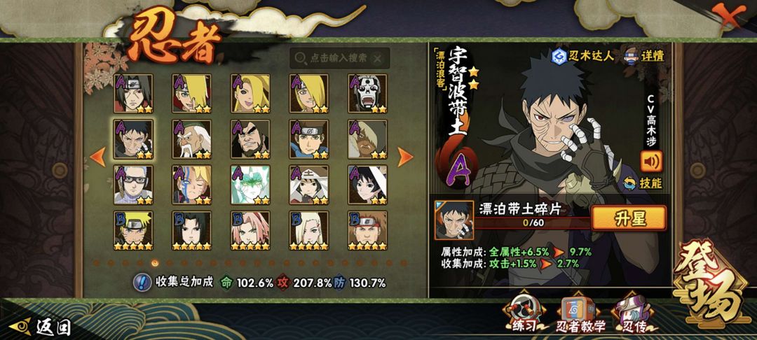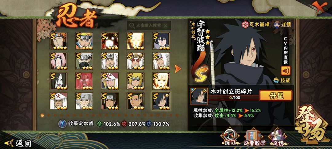装备描述:1300w战力。高招忍者会后续补上。氪金通灵暂无,慢慢补old忍者,有神驹斑,十尾带土