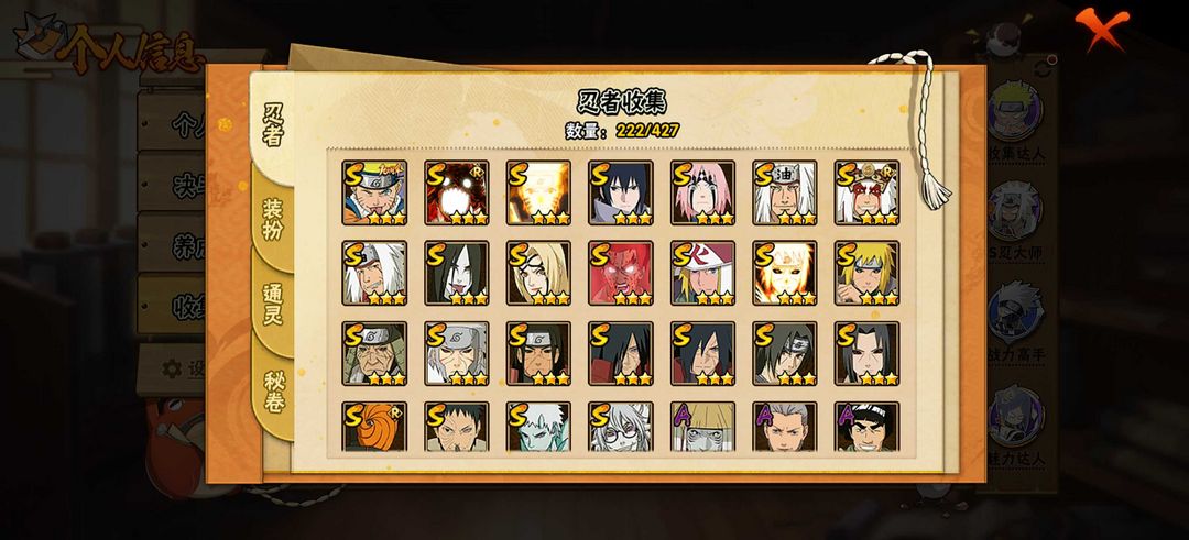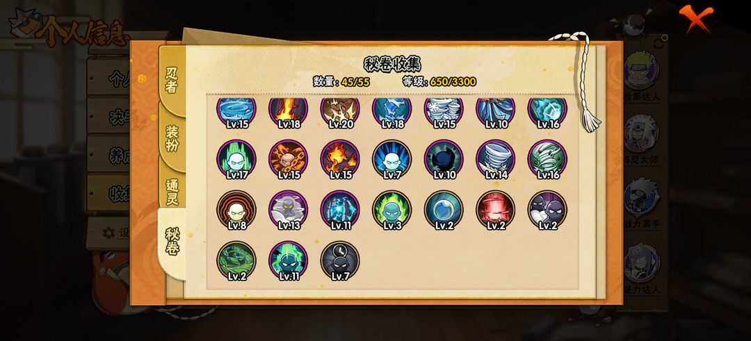 25s,54a,22通灵有熊猫,秘卷除了时空间大部分都有都满级