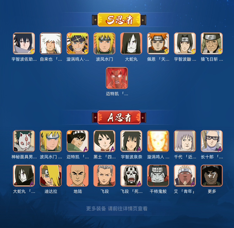 装备描述:有老三代,死门凯,面麻,热门忍者,六百六十万战力,适合新手过度或者朋友单挑