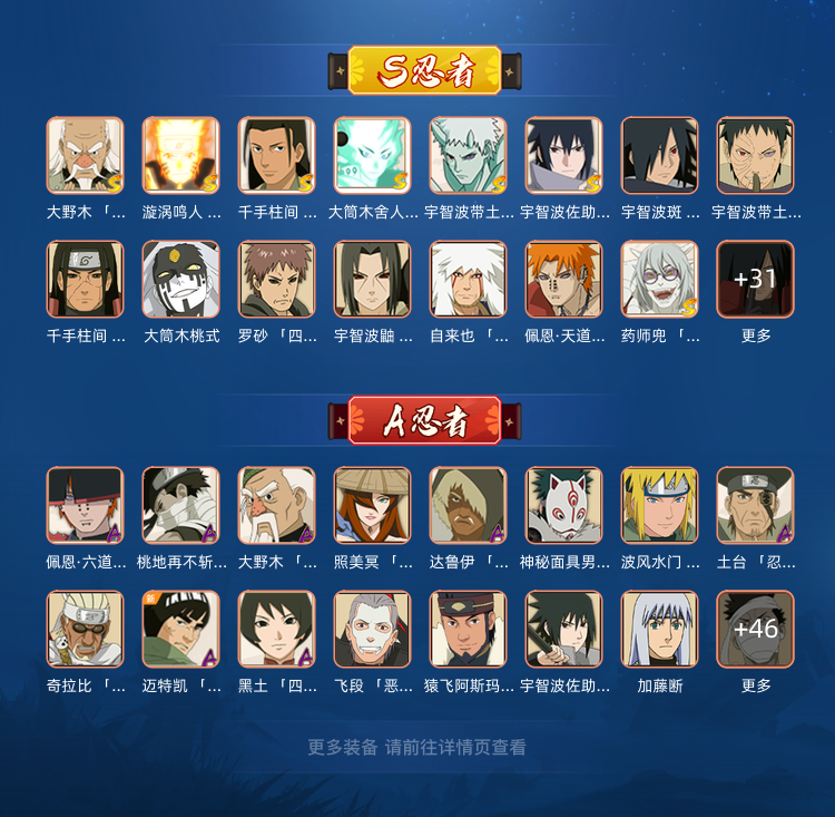 48S,64A极品高端战力号。几乎全热门忍者都有,拿来装X和同学单挑非常有面。2100万战力