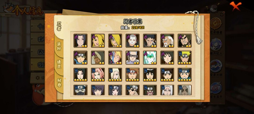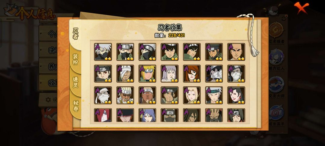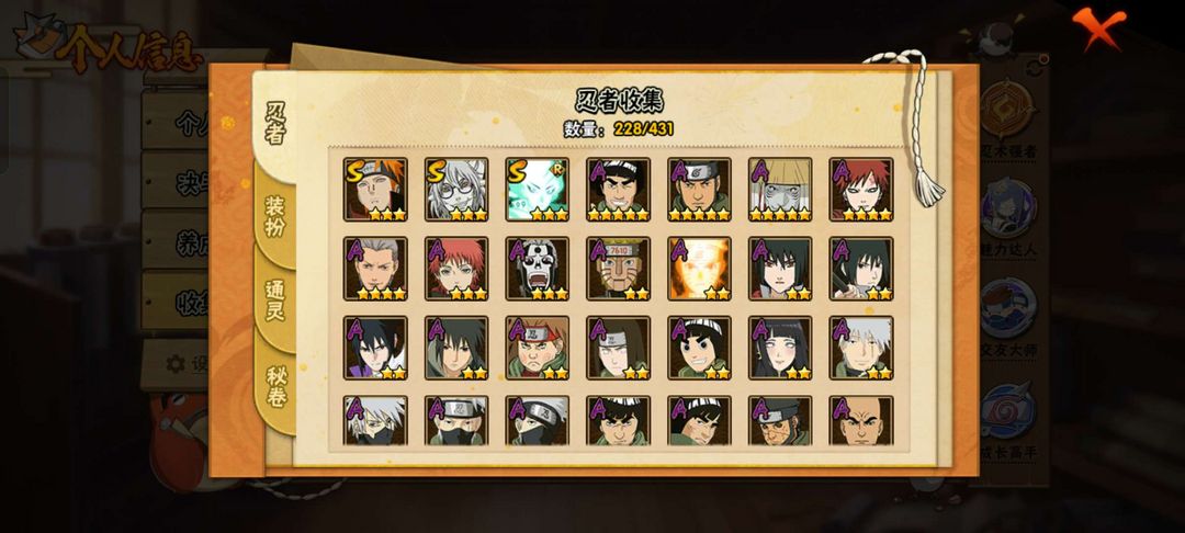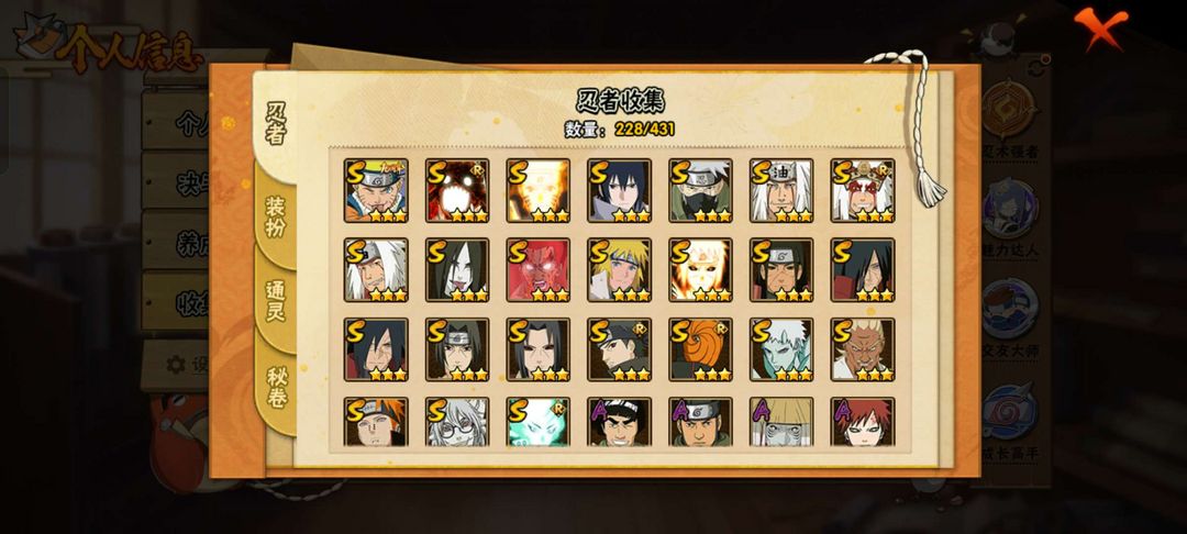 s忍24个;A忍59个;✨十尾带土✨青春哥✨暴怒6尾✨时装15个;通灵兽20个;