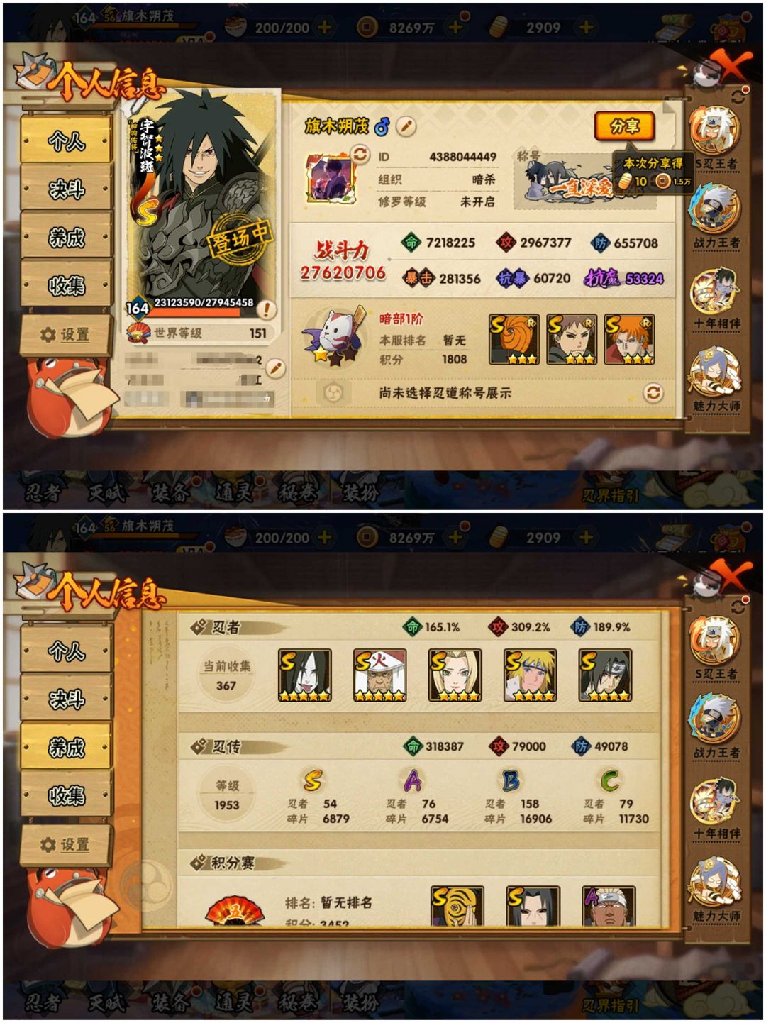 〖54s 76a 367忍 2762万〗〔神驹斑❤漂泊带土〕九喇嘛水门☀六尾鸣人☀五影会谈斑☀天道超