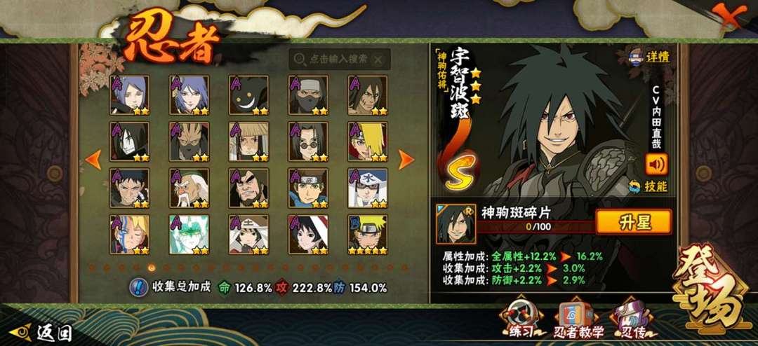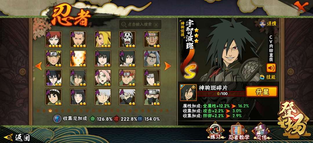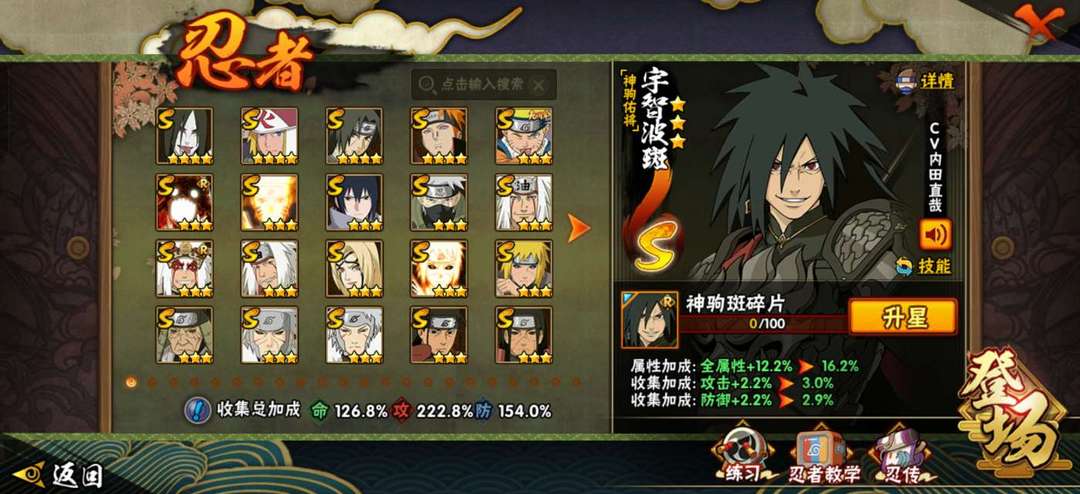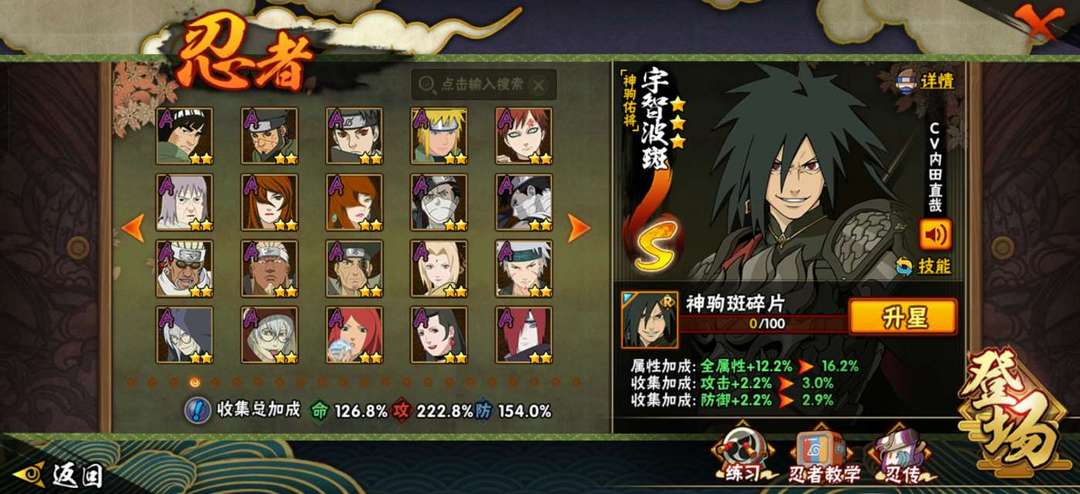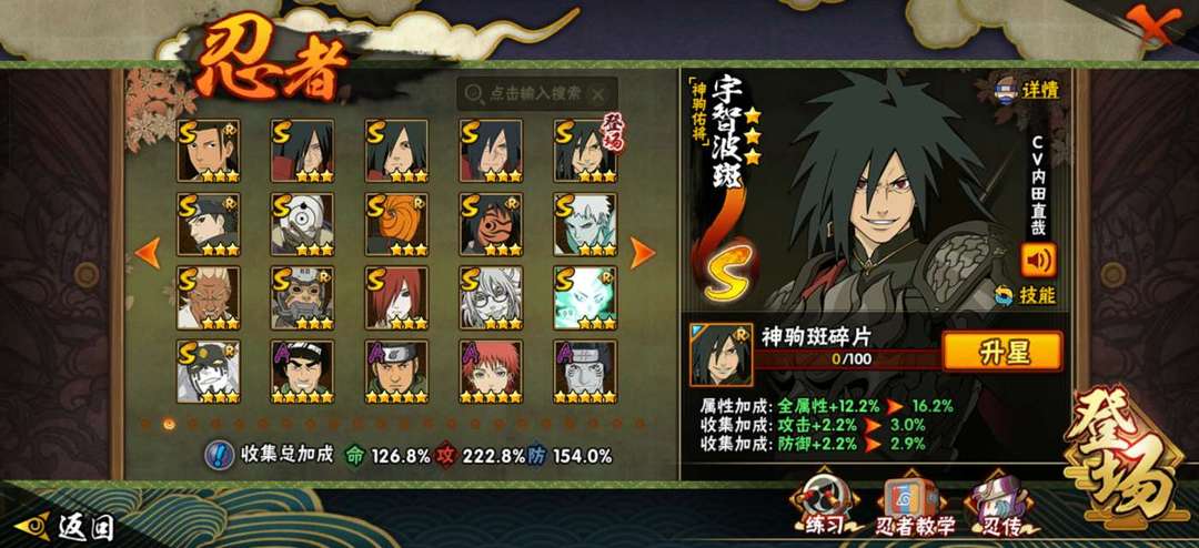 36S62A战力一千七高招忍者基本齐全,漂泊带土二代侠隐兜佐助新春鼬黑绝,氪金忍者多多,稳定不顶号