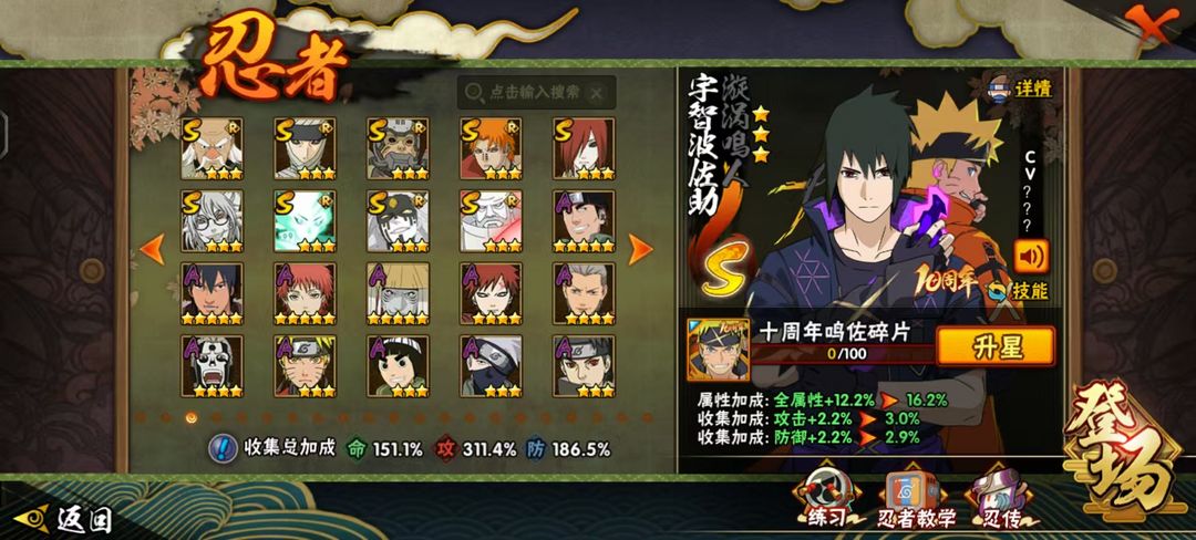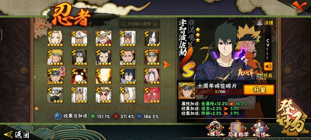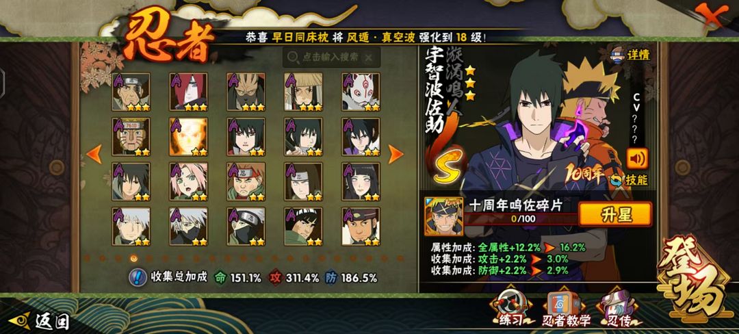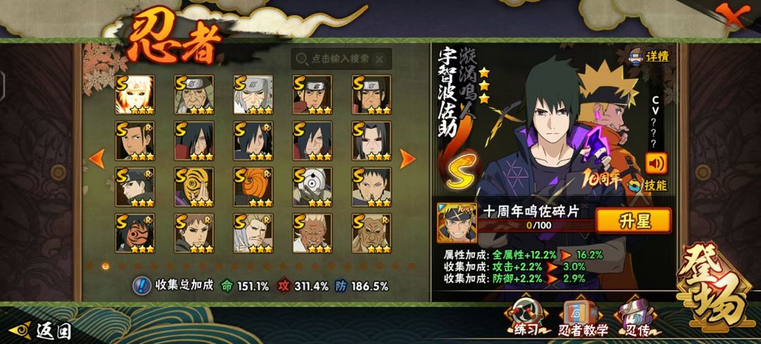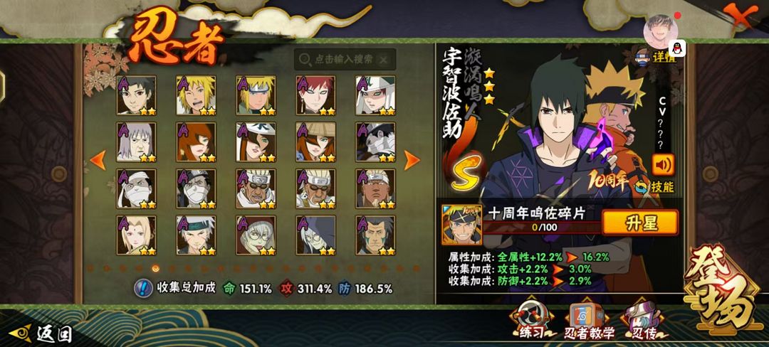 十周年鸣佐⭕妖怪纲手⭕侠隐佐助⭕全忍者⭕3600W战⭕全点卷A忍通灵时装