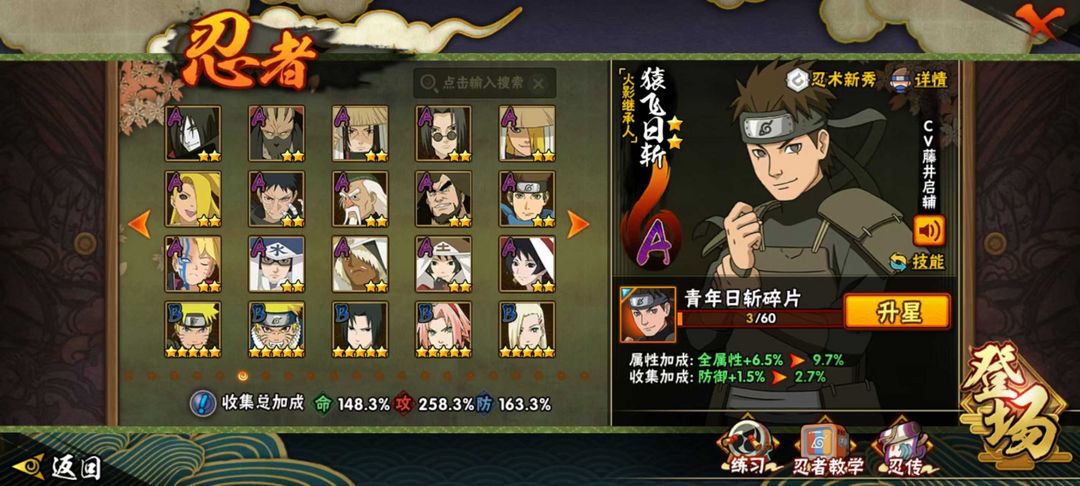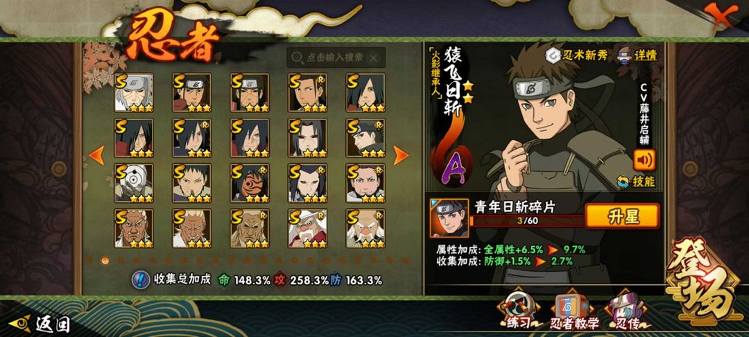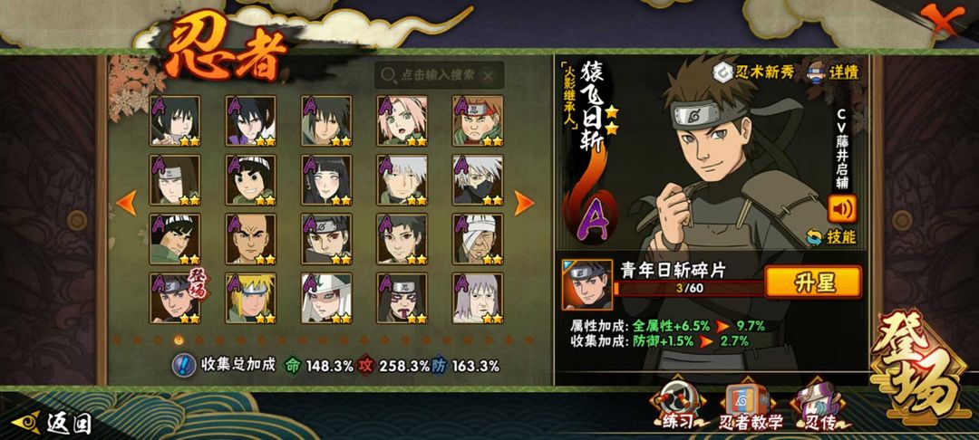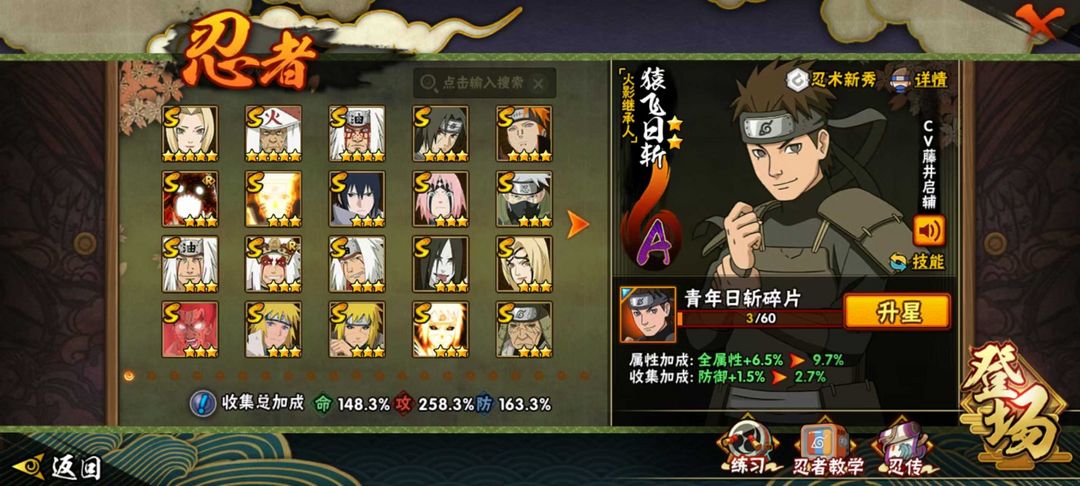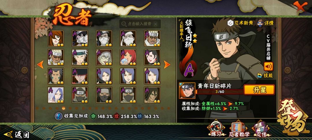 装备描述:有漂泊带土漂泊小南漂泊佩恩侠隐佐助 火影能带来快乐也你带来自闭。有梦想你也许就是火影忍者下个超影♥ 账号如标题。忍者看上图。不要动金币跟高招卷。 账号可以段位赛。安卓926区。 喜欢的话点收藏。 祝你游戏愉快O∩_∩O