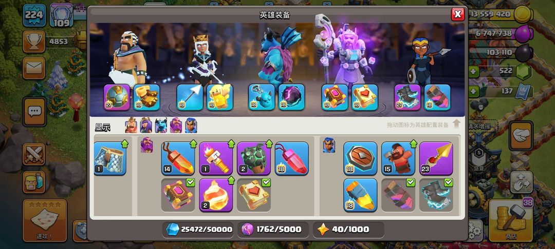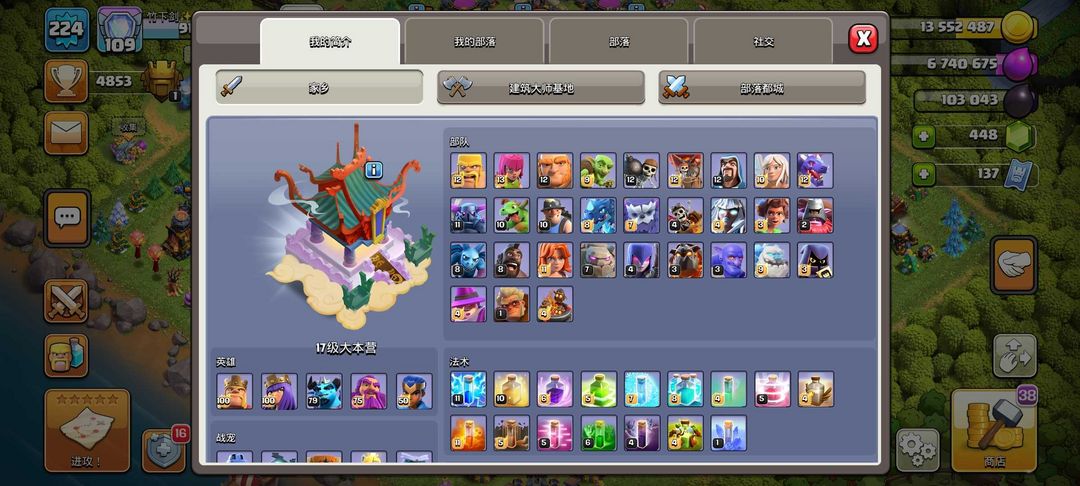 17本109繁荣度满级号,兵种、法术、攻城机器、防御、英雄及装备几乎全部满级
