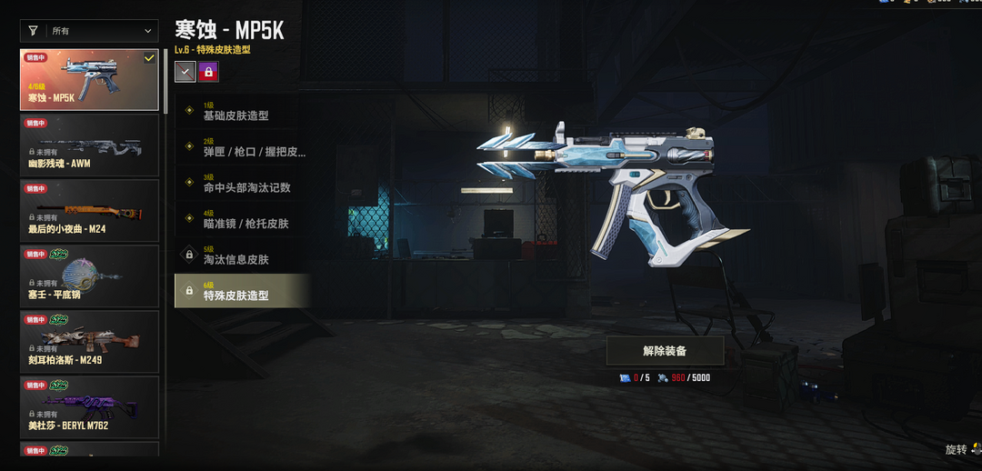 ④级寒蚀MP5K✅王牌登场M762✅黄道猎手M4✅君临寒冬AKM✅猛虎猎手SLR✅完美角度98K✅疯