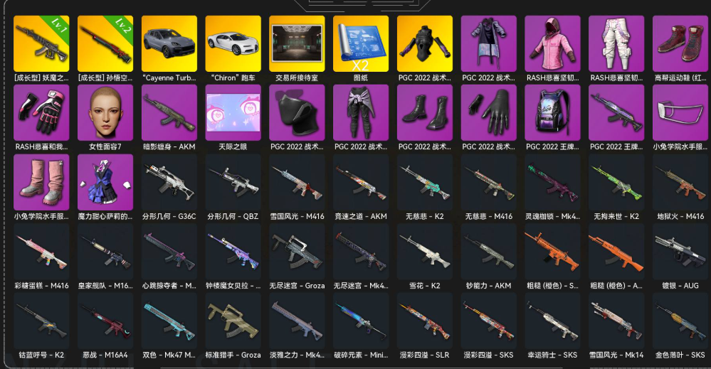 保时捷跑车√布加迪跑车√妖魔之触ACE√悟空M24√侦探全套√悲喜套√七周年套装√红面巾√王者风衣√