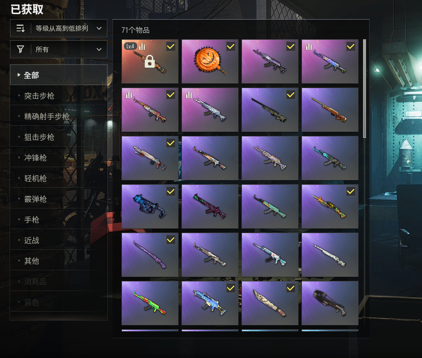 ④级小夜曲M24✅王牌登场M762✅黄道猎手M4✅破碎元素SKS✅漫彩四溢SKS✅君临寒冬98K✅幽