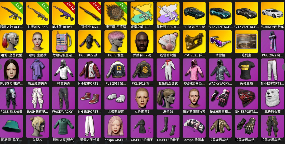 装备描述:---家里不要租 家里电脑玩不了--- 【双满级】满级异色美杜莎/满级孙悟空/布加迪/满马丁跑车/小丑女/双女团/异色妖魔ACE/时光加农SKS/唐三藏平底锅/aespa女团GISELLE/ NEWJEANS女团MINJI/AILEE面容/白战神/小战神/大金牙/电磁包/滑雪镜/滑雪帽/发光套/黑鬼/悲喜套/悲喜大礼包/熊脚/拉风龙/绿东/孙悟空套/NH冠军套装