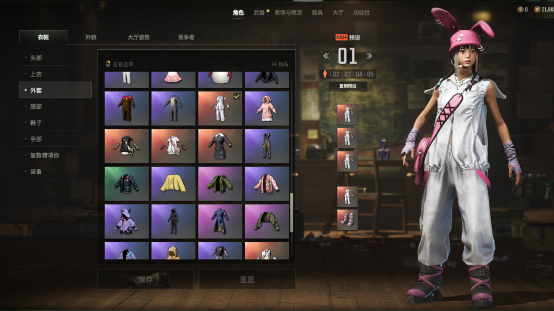 装备描述:保时捷✌布加迪白绿双色✌满NewJeans女团✌满兰博✌双大厅✌5级无重力MP5K✌女团M4✌完美ACE✌完美98K✌银河M762✌蒸汽SKS✌无信号S12K✌汪汪伙伴背包套装✌黑鬼✌各种夹克✌发光套✌大金牙✌女皇面具✌毛绒卫衣套蓝+黑色✌