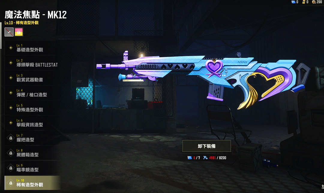 6满4异色8神器✅女团布加迪✅⑩异色美杜莎⑩异色无信号⑩异色M24⑩MK12⑥mp5②莲花锅✅可排位