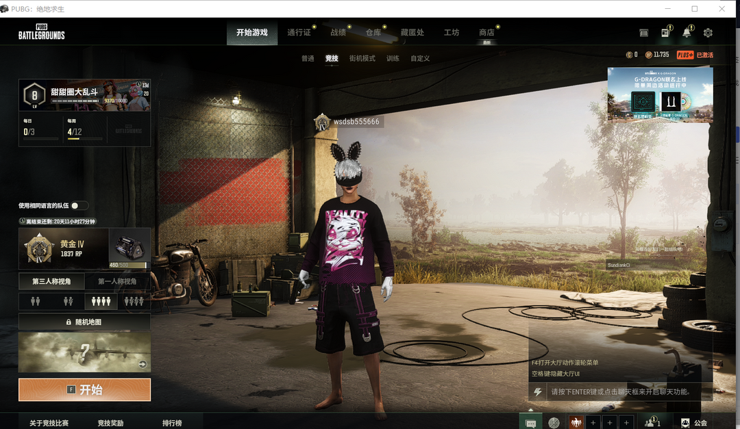 可排位✅尼尔头✅坏兔子套老兵号✅橙色运动裤✅双马尾✅AKM✅M4✅AKM✅M762✅98K