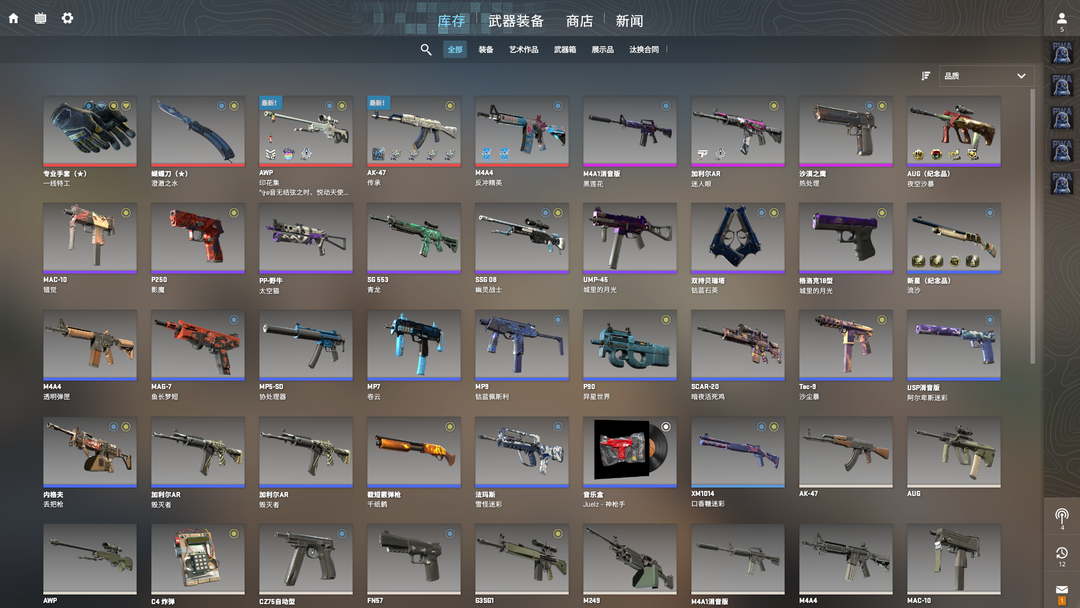 完美B+⚡澄澈之水蝴蝶刀⭐一线特工手套⭐传承AK⭐印花集大狙⭐黑莲花M4A1⭐反冲M4A4