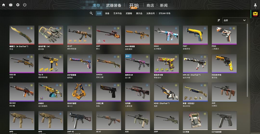 可完美C+❤️传说蝴蝶刀+欧米茄手套❤️燃料喷射器AK❤️野火awp❤️金蛇缠绕A1❤️反冲精英A4