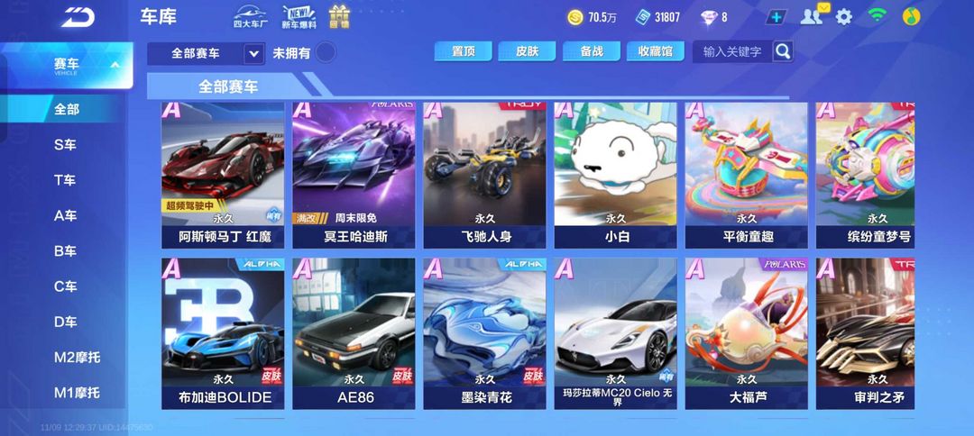 一辆悬浮,阿斯顿马丁、AE86、魔王、平衡童趣等多辆A车