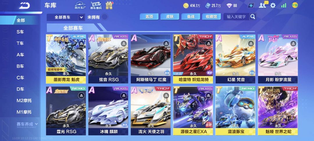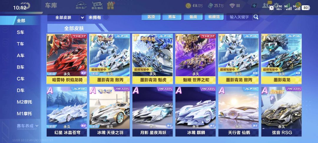 青龙葵虎哈雷特魅娅世界之蛇源极之星,5大主流A车都有,道具骑宠有加鲁鲁冰马,竞速有骑宠有龙神火龙