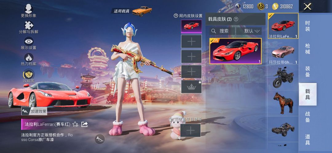 最新车皮法拉利/48粉装/14特7满级/盖世英雄/时空协奏/2载具/新军需/小金鞋