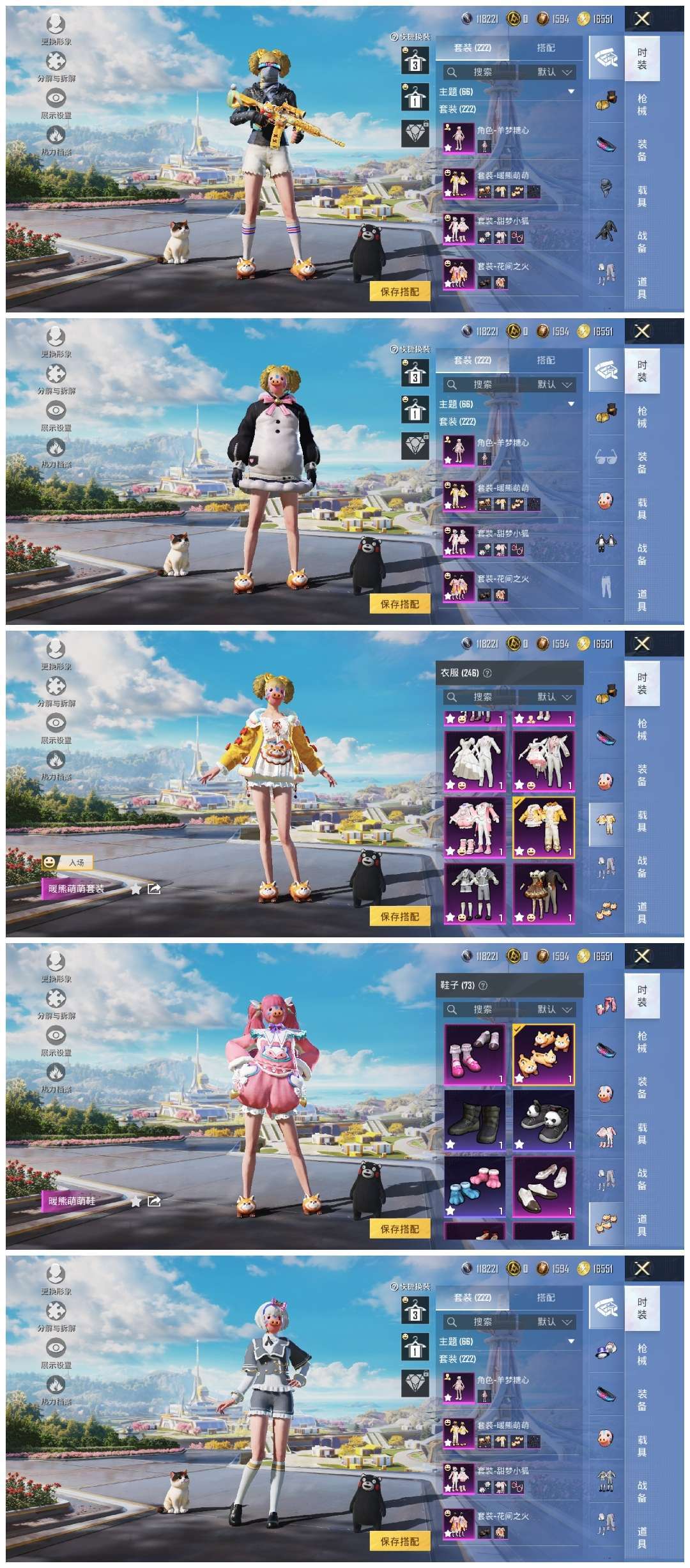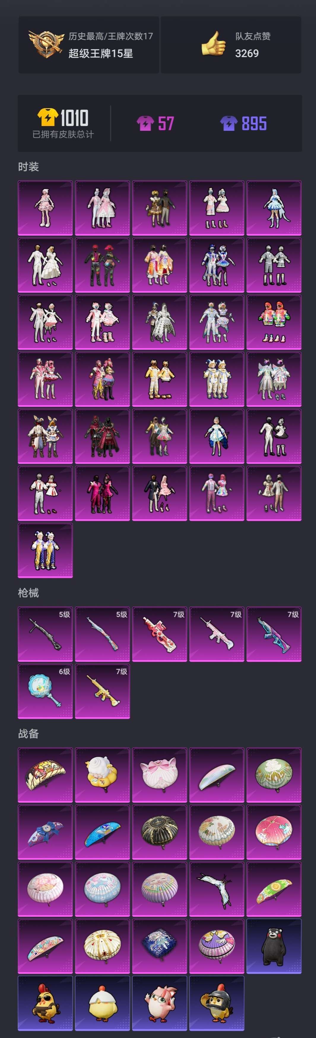 装备描述:甜妹号30粉装/6特效枪/巧克力,胖达团团,权威番茄,都市猎人,童趣迷兔,甜梦小狐,暖熊萌萌,