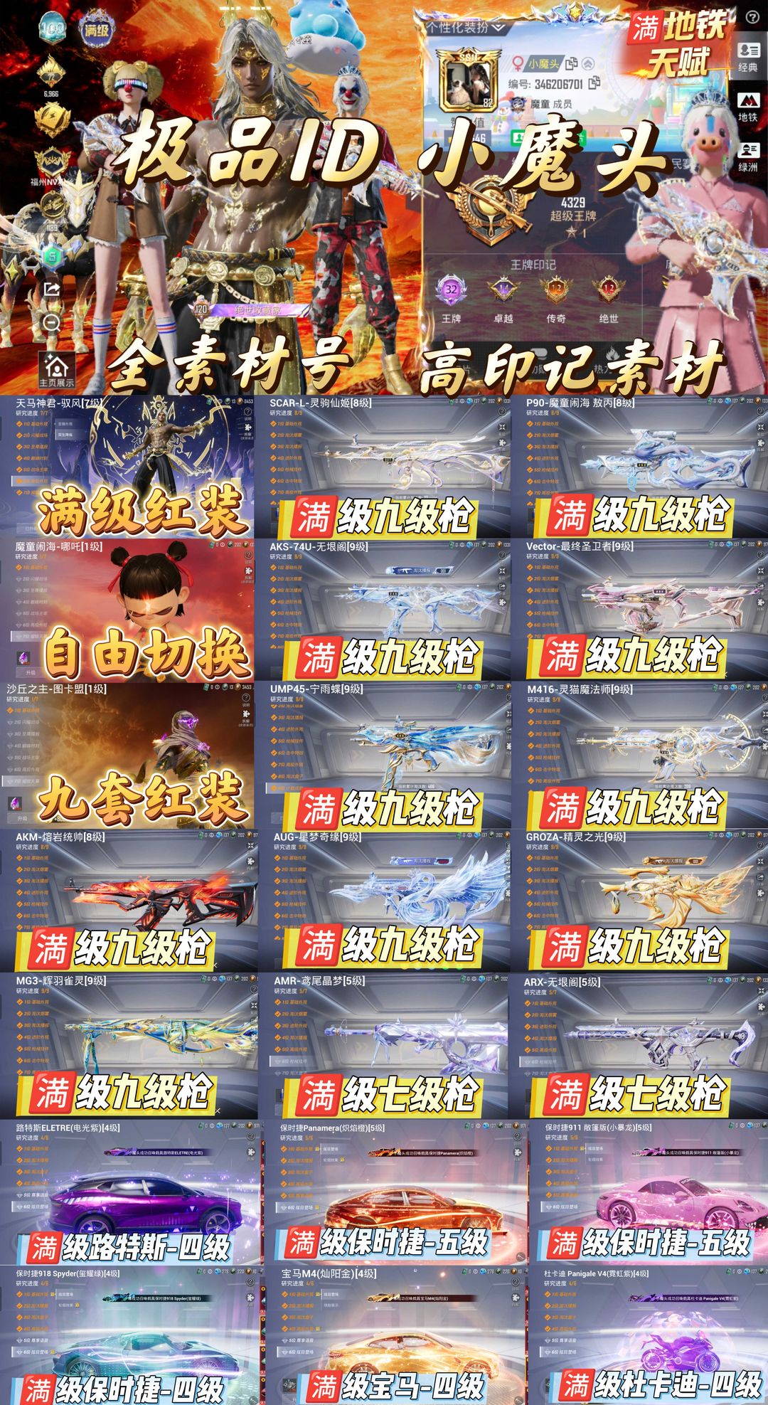 极品ID小魔头/满级天马神君/全素材/老101老S1/无限阁/星梦奇缘/雨蝶/魔法/保时捷