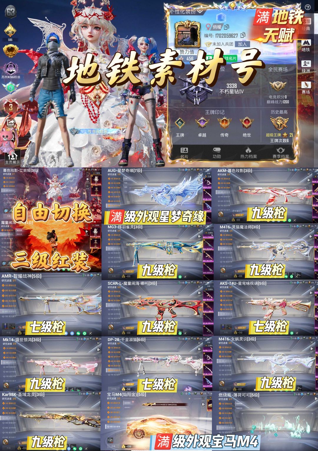顶氪地铁/三级红装/七级星梦奇缘/宝马M4/灵猫/暮色/魔童/女娲/燃烧瓶