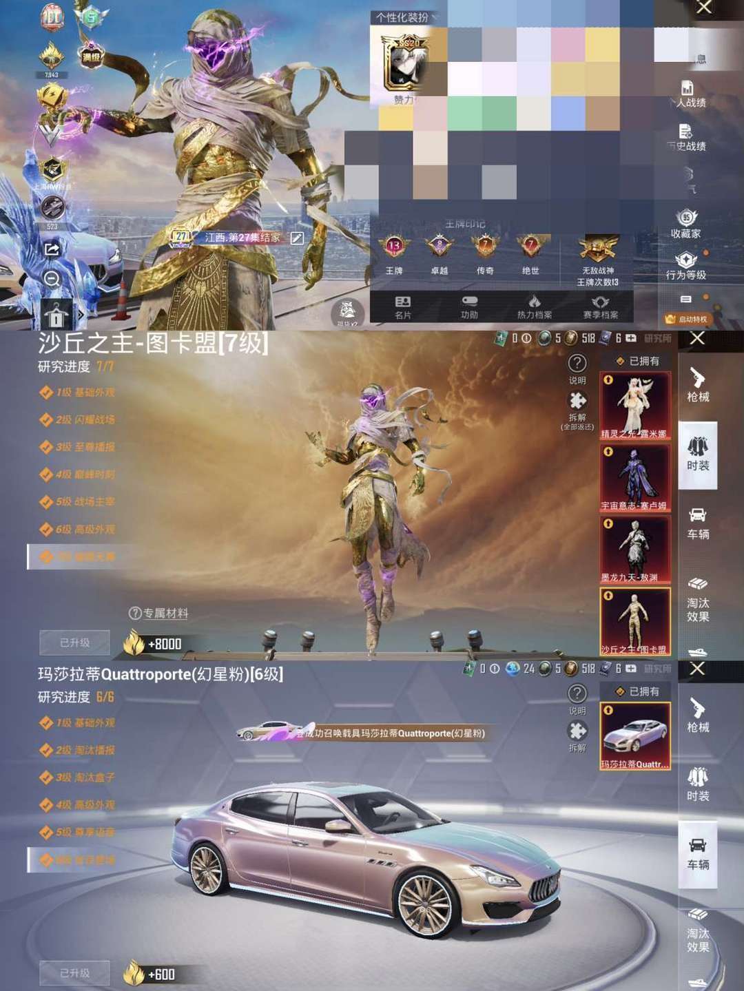 装备描述:满级红装/沙丘之主-图卡盟✨韩文单字ID✨江西第27集结家!粉丝金标! 5把满9级特效枪★满6级玛莎拉蒂/4套红装★满9级AUG星梦奇缘★满9级SCAR万古烈焰★满9级M4至情至圣★满级P90仙履奇缘★满9级SCAR天蓬元帅 战神框-7绝世-木乃伊 毁号行为涉及毁坏虚拟财产罪及计算机安全罪,请文明游戏素质游戏,让我们共建美好租号平台! 请游戏局内保持文明,防止禁言影响他人游戏,祝您玩得愉快!