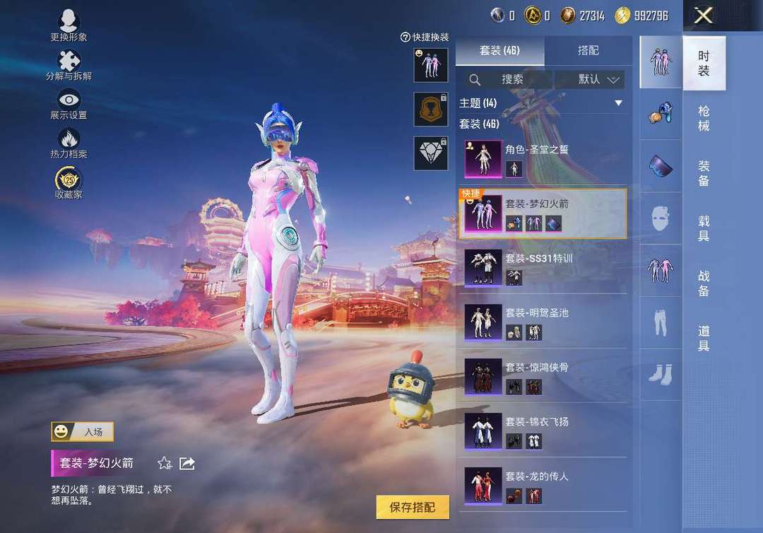 「梦幻火箭+圣堂之誓」和平精英高颜号|46套时装+69枪械,梦幻火箭降落伞