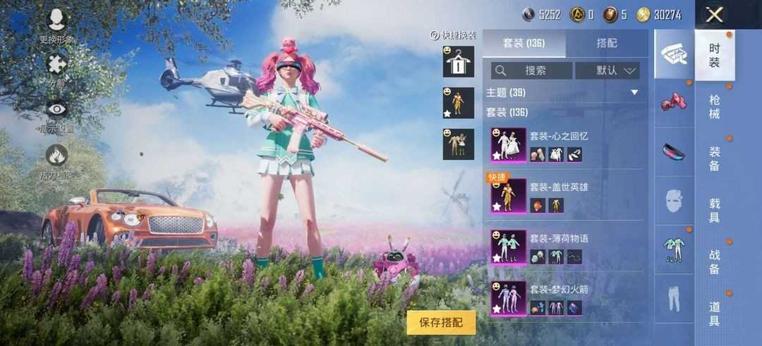 装备描述:15载具,165套装,0王牌印记 SCAR-L-梦幻火箭/Kar98K-伏魔团/Kar98K-巳巳如意/M762-激战未来/M416-心之恋语/AKM-炫紫旋律/兰博基尼Aventador(翡翠绿)/阿斯顿·马丁DBX(橙)/特斯拉Model X(珍珠白)/特斯拉Model 3(珍珠白)/玛莎拉蒂Ghibli(蓝)/阿斯顿·马丁DBS(红)/双人摩托-梦幻火箭/宾利欧陆GT敞篷(火焰橘)/特斯拉Cybertruck(极昼黑)/快艇-塞莎KL27(霓虹粉)/合金龙骨(蓝)/路特斯ELETRE(电光紫)/特斯拉Model 3(冷光银)/迈凯伦570S(天际蓝)/合金龙骨(绿)/