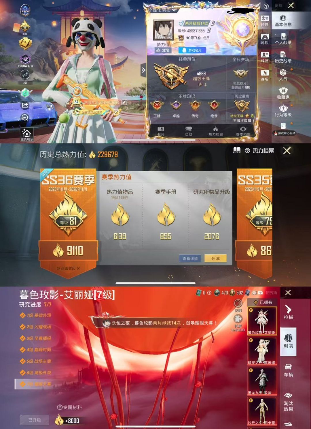 老101小丑雪国70粉50枪20车❤满级艾丽娅5红❤9级星梦奇缘9级至情13把满级枪❤满级宝马帕加尼