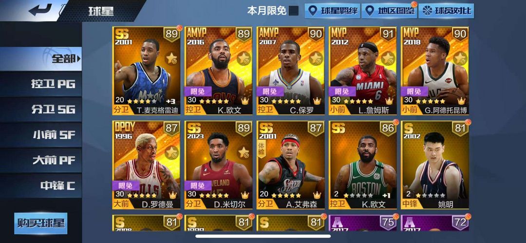 ★麦迪2001★保罗★米切尔★热火詹★罗德曼★字母哥★欧文★