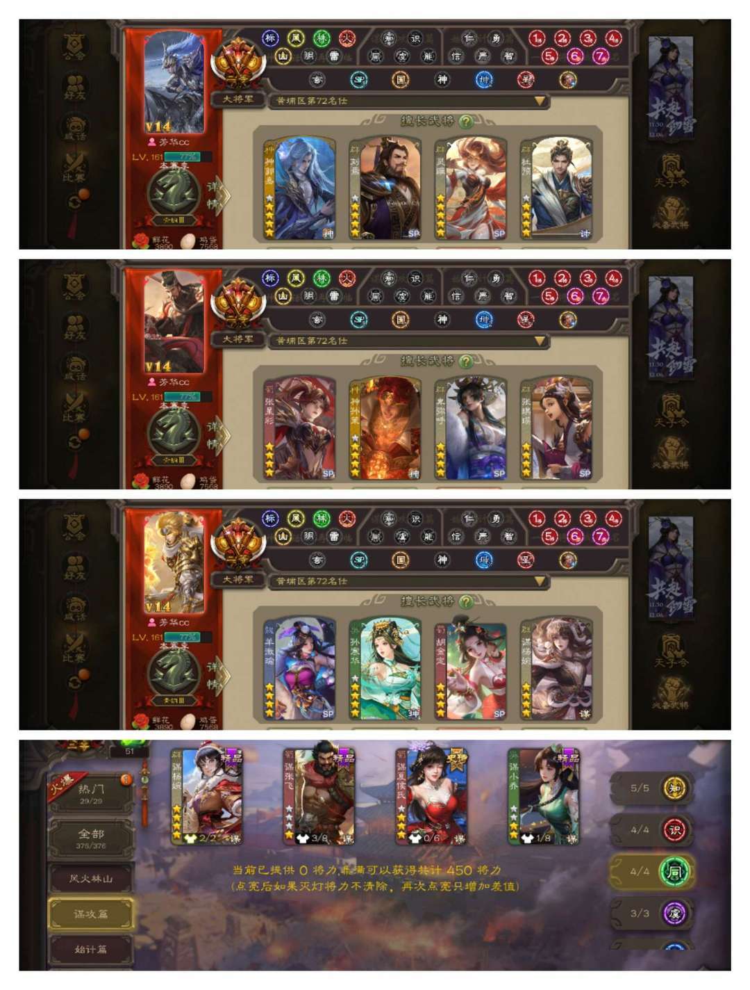 限制: 撤单率<19%才可租用此帐号装备描述:官方二等大将军,无卡,VIP14! 1五星炎龙:回廊动灵雎! 11四星玉龙:回廊双形态至臻动神郭嘉,回廊双形态至臻动杜预,回廊动神孙策,回廊动孙寒华,回廊动羊徽瑜,回廊动张星彩,回廊动卑弥呼,动刘焉动张琪瑛! 61史诗武将,回廊动文鸯,回廊动谋关羽,动谋诸葛亮动王元姬动花鬘,动留赞动神赵云动神陆逊,金杨彪金界徐盛金戏志才金郑玄,神甘宁神鲁肃十常侍界沮授,郭女王谋夏侯氏周群界李儒南华老仙,鲍信阎象曹嵩谋大乔谋小乔,谋荀彧谋张飞谋卢植李昭焦伯等! 46动皮110金皮185国战皮肤!