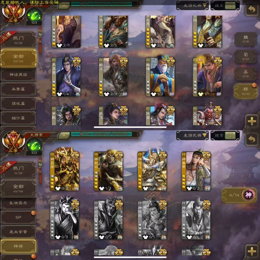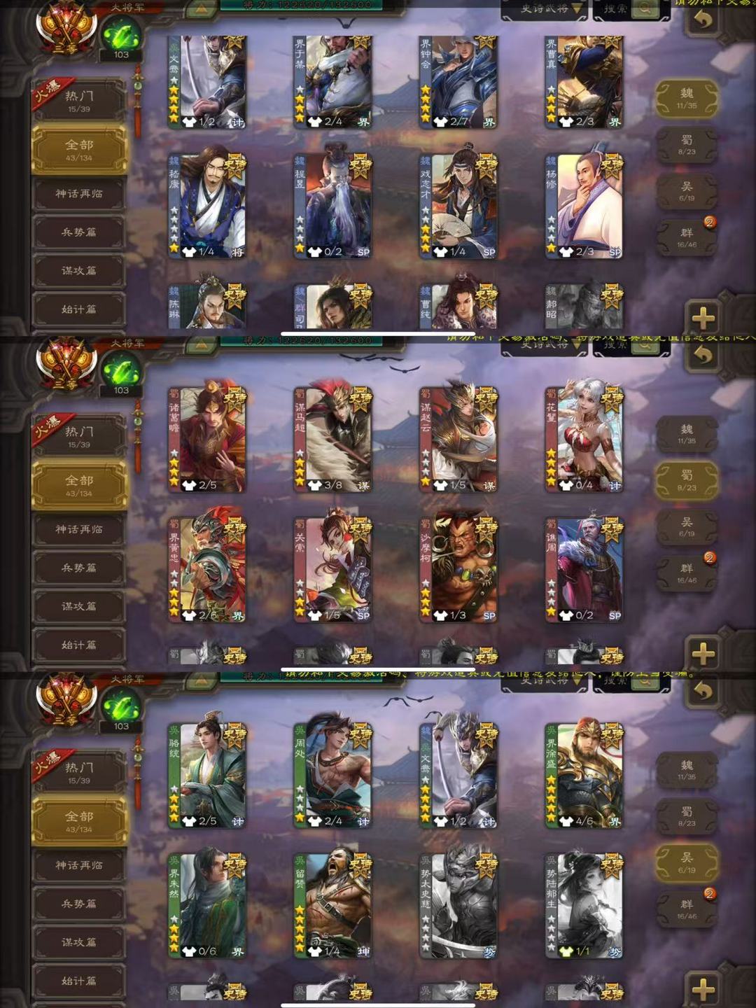 43史诗大将军✔司马昭文鸯界徐盛神鲁肃界左慈界李儒麹义南华老仙神赵云