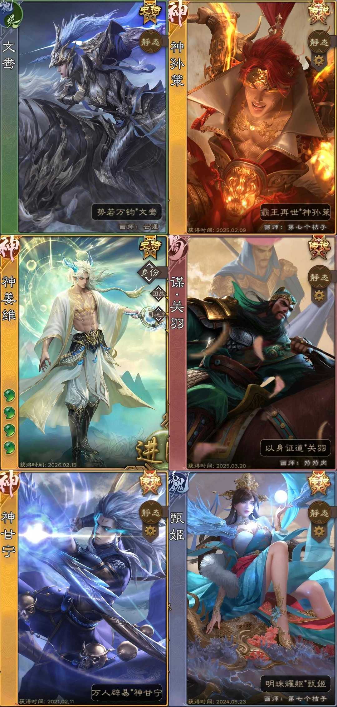 【换将卡】44史诗⚡玉龙神姜维动谋关羽动文鸯奇门孙寒华裴秀动神甘宁动神郭嘉歌王白马星甘宁动大宝