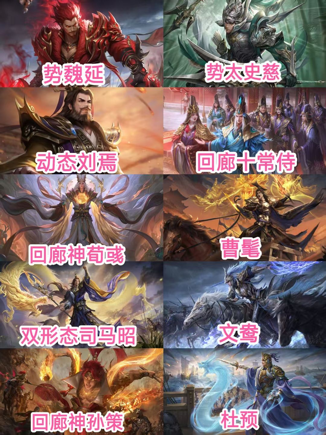 【有卡】大将军刘焉☀势陆郁生势魏延势太史慈☀回廊十常侍☀回廊神荀彧神孙策☀双形态司马昭曹髦文鸯杜预