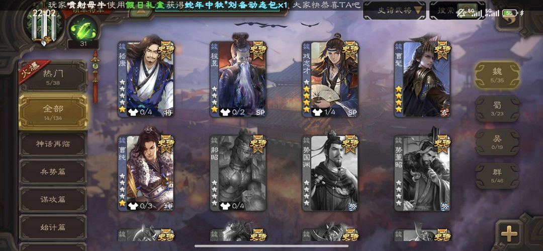 装备描述:动徐荣 曹髦 戏志才 界李儒 阎象 神吕布 星董卓 曹纯
