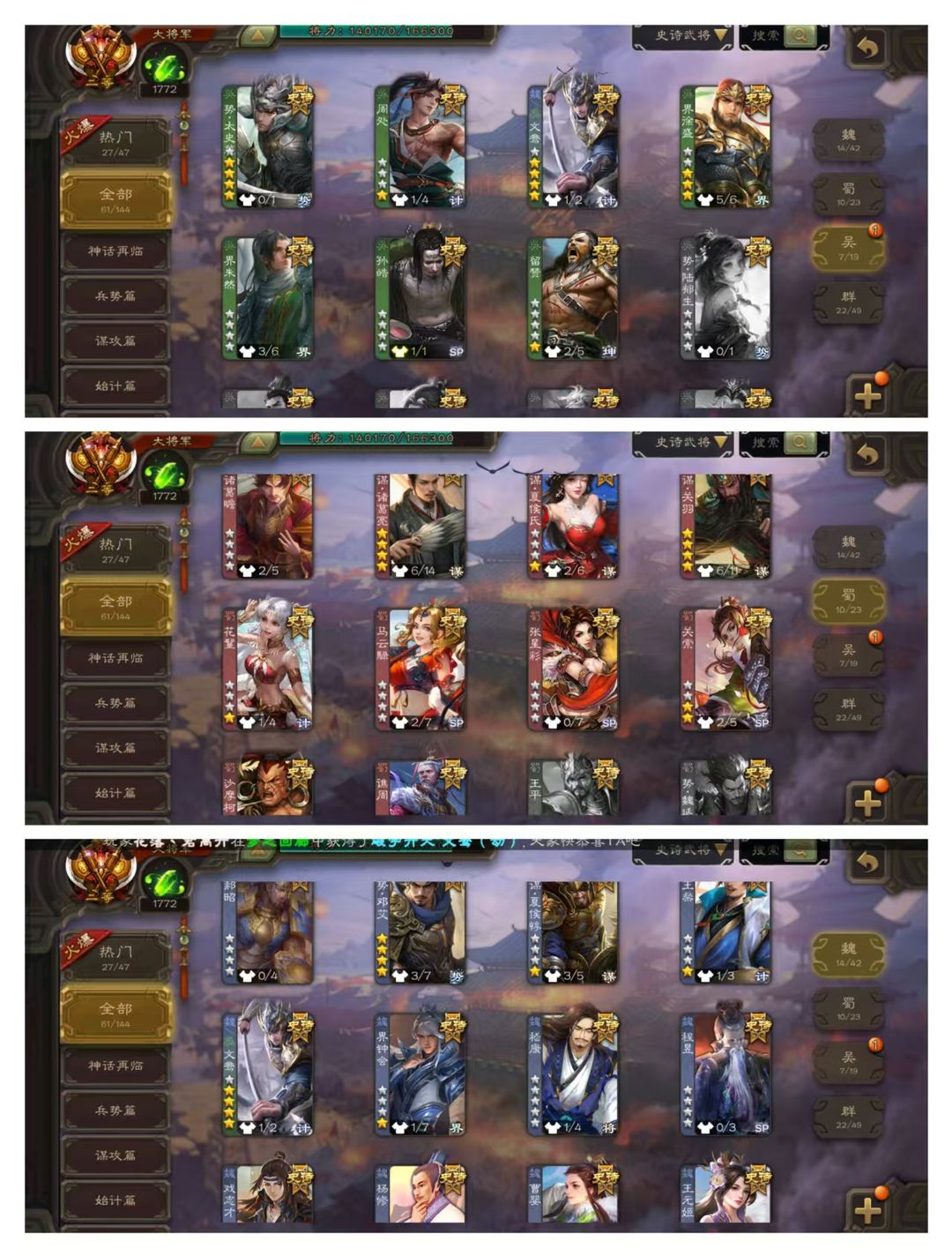 有卡【60史诗大将军】双形态动神郭嘉*动界沮授动刘焉动神曹操动神荀彧动谋诸葛亮*势邓艾势太史慈神鲁肃
