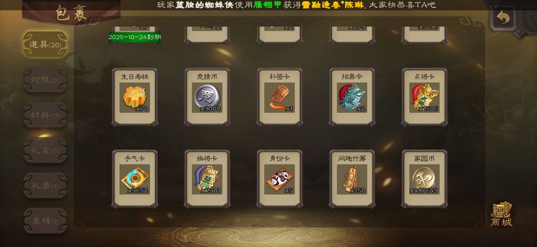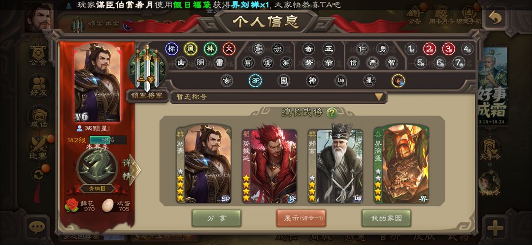 装备描述:【有三卡】动刘焉|势魏延|动大宝|三卡道具随便用|低官阶|炸鱼号