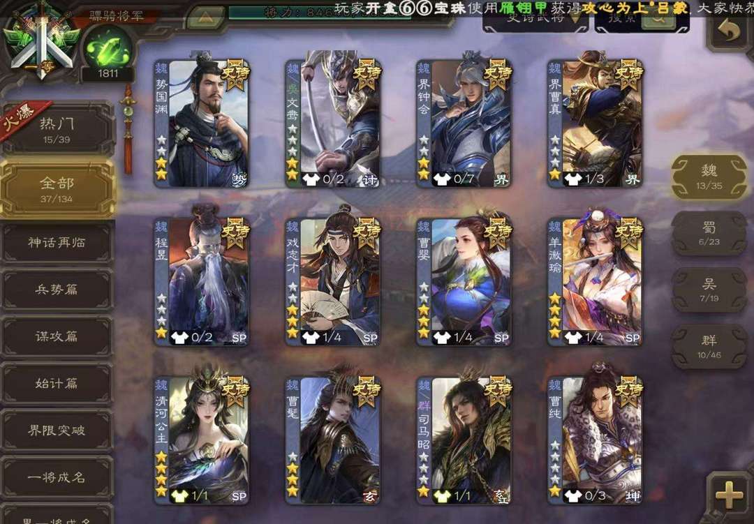 有卡-动态神司马懿-势国渊-动态谋关羽-曹髦-势太史慈-文鸯-动态孙寒华-动态谋貂蝉-清河公主司马昭