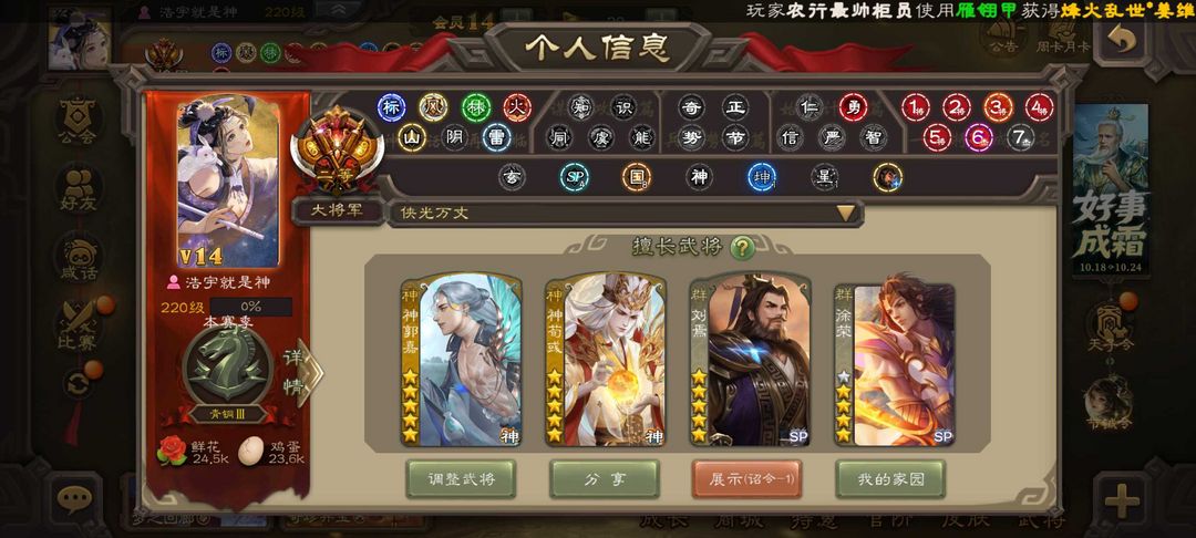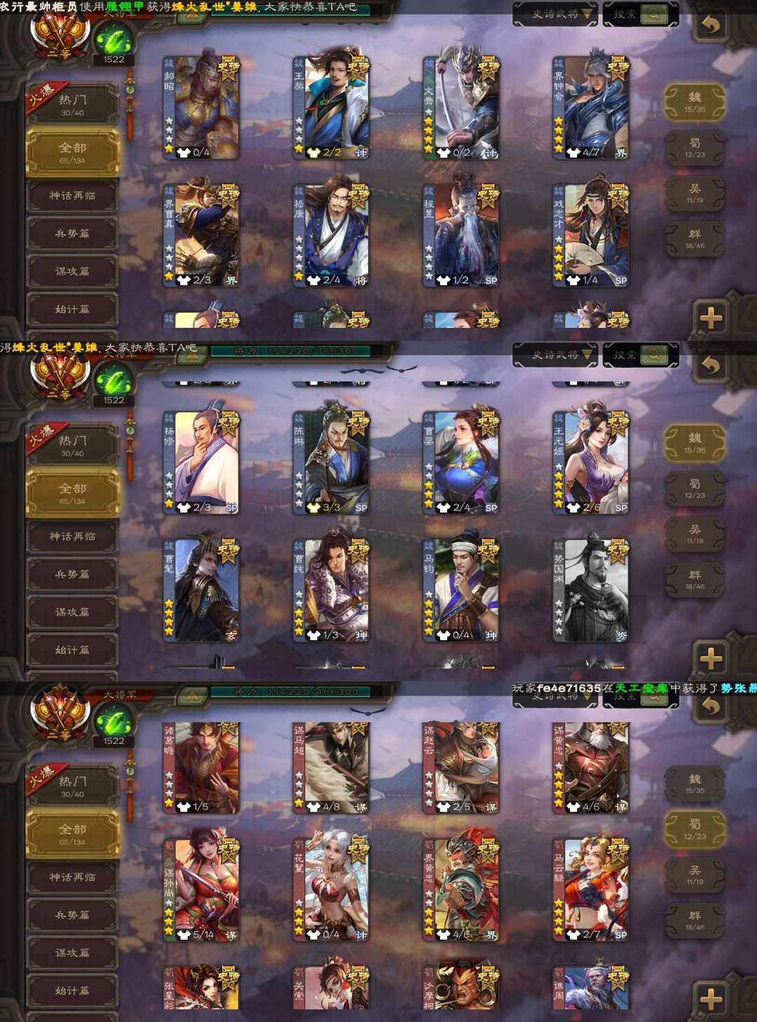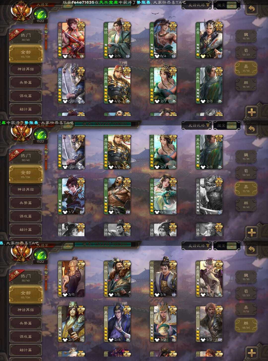 装备描述:魏:文鸯 动态界钟会 手办皮曹婴 曹髦 马钧 蜀:动态谋黄忠 谋孙尚香 吴:动态界徐盛 孙寒华 留赞 群:杜预 动态刘焉 涂荣 南华老仙 祢衡 神:神曹操 动态神郭嘉 动态神荀彧 神孙策 神太史慈 神甘宁
