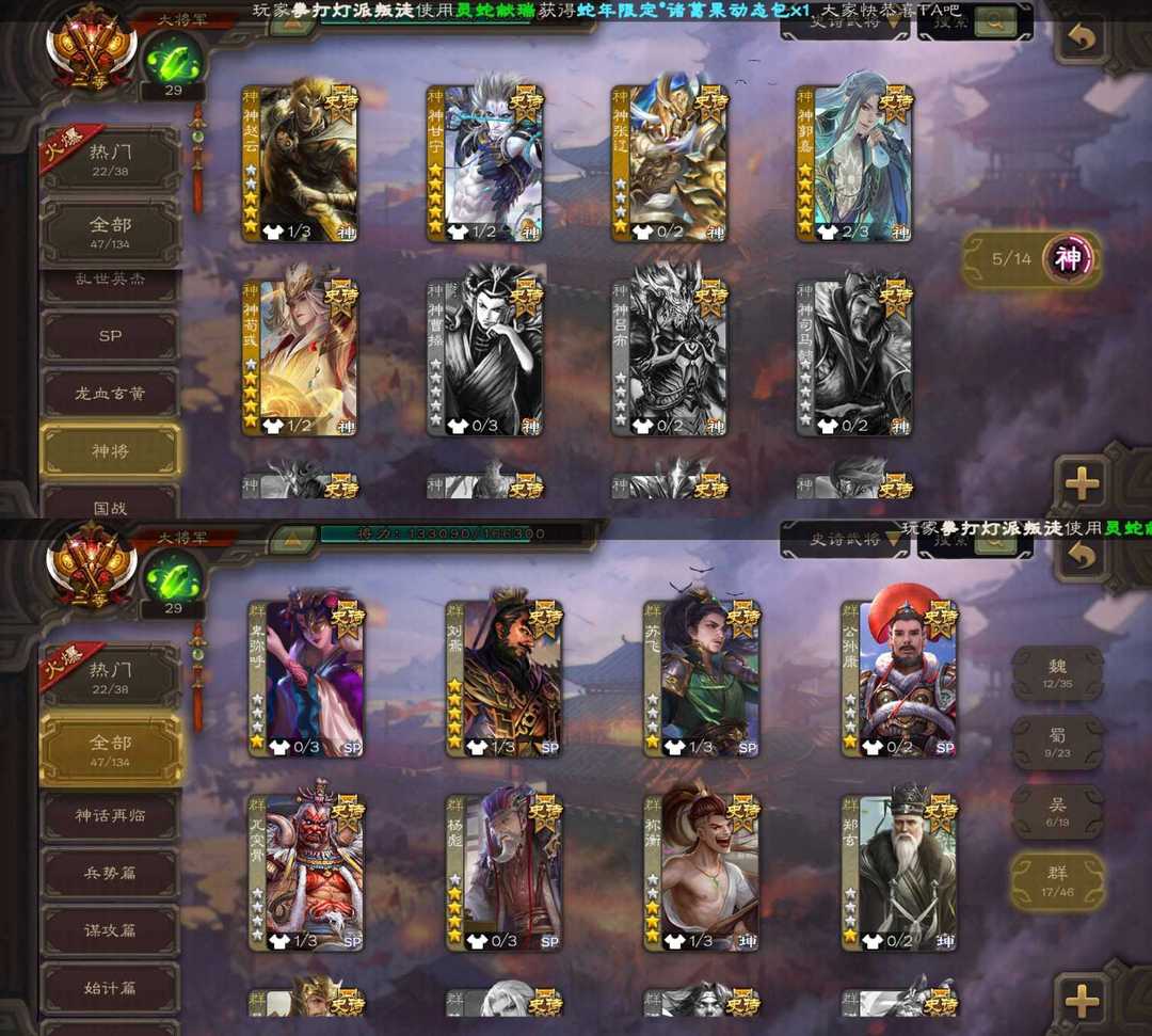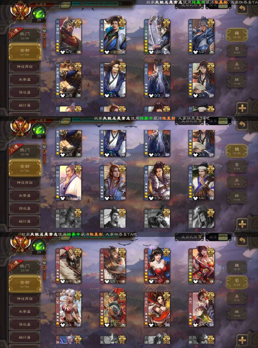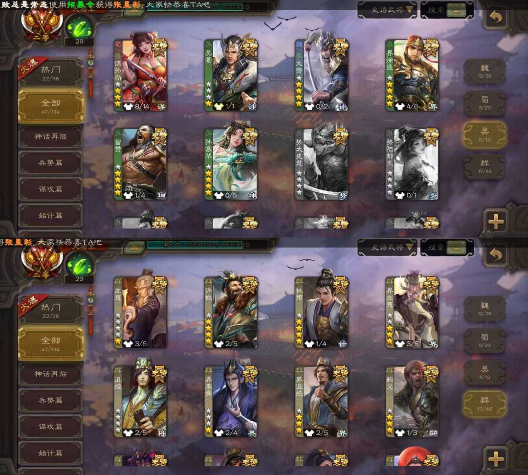 装备描述:魏:文鸯 界钟会 马钧 蜀:谋夏侯氏 谋孙尚香 吴:动态界徐盛 孙寒华 留赞 群:杜预 界沮授 动态刘焉 祢衡 杨彪 神:动态神甘宁 双形态神郭嘉 动态神荀彧