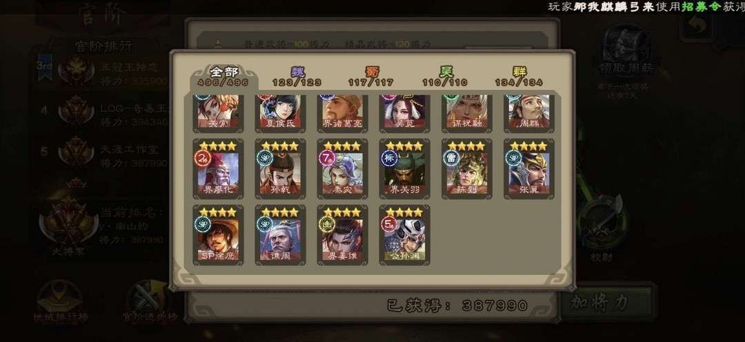 【有卡】全灯全将全动vip27一等大将军 榜96 势国渊回廊动张奋SP曹操天宫全氪窄融回廊谋曹丕