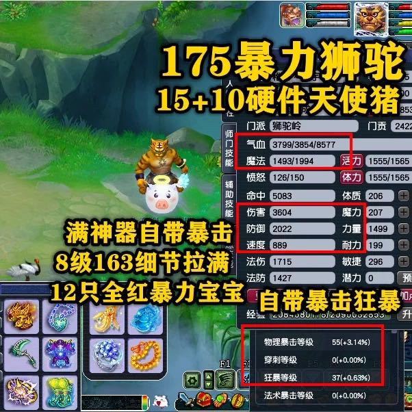 ✨梦幻西游租号✨175暴力狮驼岭⭐全身变身套,开场人间大炮