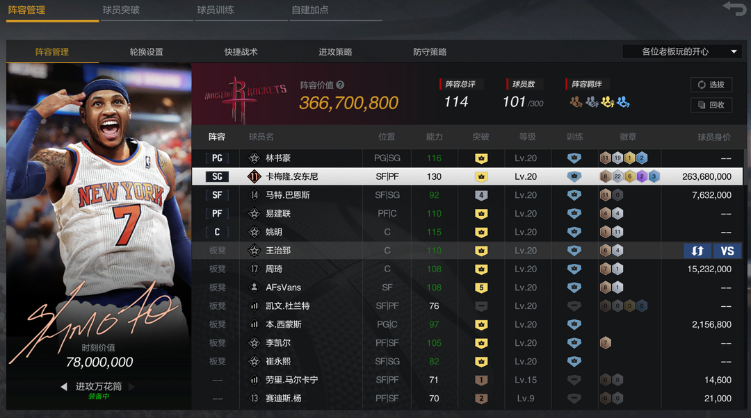 【超级全能♛甜瓜♛满突双时刻安东尼♛满突收藏版林书豪♛可排位♛超大衣柜】