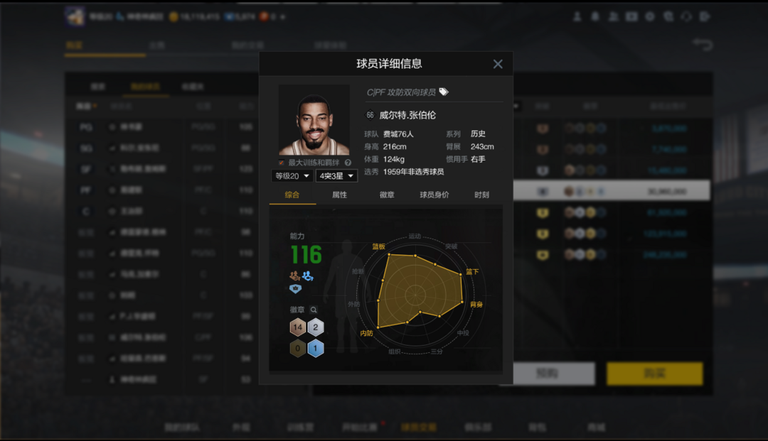 装备描述:本号拥有“天神下凡”5突勒布朗·詹姆斯,攻防一体,是当前版本T0级别的球员!顶级运球包+无限起飞+强硬推人动画。花小钱体验满突90%的核心强度,街头单排1号位自由开火,王朝推反击无解一条龙。这一档位体验天神的最佳选择,试过的都懂。 【新增4突陈列室张伯伦】顶级模型怪+专属篮板动画!街头单排体验拉满,王朝完美适配五外。搭配5突天神詹,内外双核已就绪! 虽是4突,但凭借顶级模型(216cm)和243cm超长臂展,配合陈列室专属篮板动画,实战中篮板统治力堪比满突平民C。护框、协防面积巨大,无球速度极快,街头模式单排体验极佳,王朝模式完美适配五外/四外一内战术。想感受抓飞板的快感吗?4突张伯伦自带顶级篮板动画,防守端覆盖面积极大。搭配天神詹打挡拆顺下,视觉效果拉满!花小钱体验陈列室硬C的顶级强度,这一档位的不二之选。 绝版收藏!满突“龙之队”4人组(姚明、易建联、林书豪、王治郅)齐上阵,情怀拉满,娱乐与强度并存! 满训练卡特训11人,2亿阵容, 通通都是能突能扣!外线能突能扣三分又准,冲击力十足,战术能里能外
